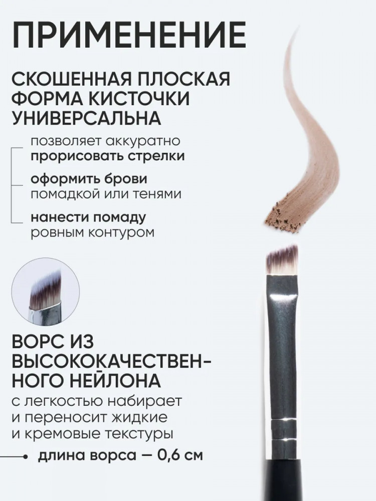 💳 Оплатить за товар можно при получении 🇰🇿 Есть бесплатная доставка по Казахстану 🎁 Копите бонусы с каждой покупки Многофункциональная кисть со срезанным углом идеальна для нанесения подводки и коррекции формы бровей. Благодаря упругому ворсу кисть легко рисует плавные и чёткие линии, с её помощью можно создать как тонкие повседневные стрелки, так и выразительные. |