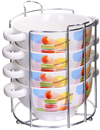 Loraine Набор супниц на подставкеВ данный момент этот товар отсутствует в продаже. Возможно, у нас найдется аналогичный или похожий товар здесь. Набор из 4-х супниц выполнен из высококачественного фарфора и украшен декоративным рисунком. Супницы компактно располагаются на оригинальной подставке из нержавеющей стали и не занимают много места при хранении. В фарфоровой посуде блюда сохраняют свои вкусовые качества, кроме того она обладает термической и химической прочностью. Благодаря оригинальному дизайну, такие супницы отлично подойдут как для ежедневного использования, так и для праздничной сервировки стола. Изделия оснащены двумя удобными ручками. |