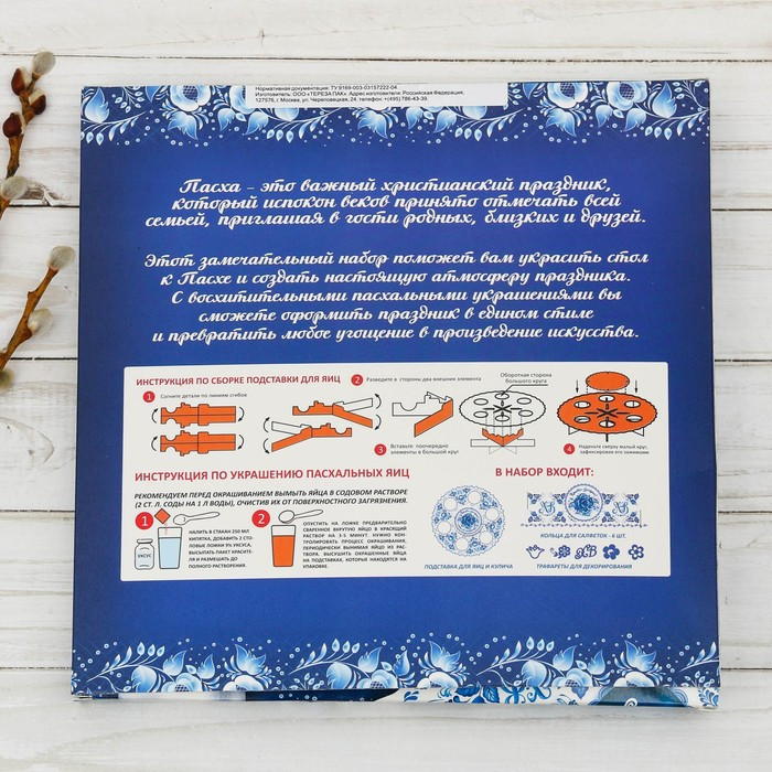 Набор пасхальный с красителем «Расписное чудо. Гжель»В данный момент этот товар отсутствует в продаже. Возможно, у нас найдется аналогичный или похожий товар здесь. Пасха — главный христианский праздник. Пасхальные яйца символизируют рождение нового мира через Воскресение Христово. В пасхальный набор «Расписное чудо. Гжель» входят: подставка для яиц, пищевые красители, кольца для салфеток, трафареты. |