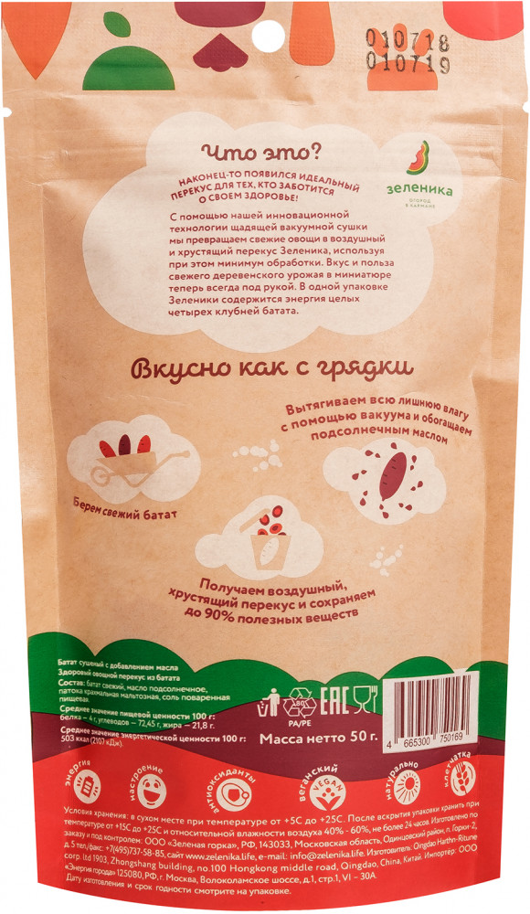 Зеленика Перекус овощной «Батат»В данный момент этот товар отсутствует в продаже. Возможно, у нас найдется аналогичный или похожий товар здесь. Серия: Здоровый перекус Здоровый перекус «Зеленика» — это не продукт, сделанный на основе овощей, фруктов, грибов и ягод. Это и есть свежие овощи, фрукты, грибы и ягоды, которые проходят максимально щадящий процесс вакуумной сушки, а потому сохраняют практически все свои полезные свойства, вкус и насыщенность, теряя при этом в весе и объеме. |