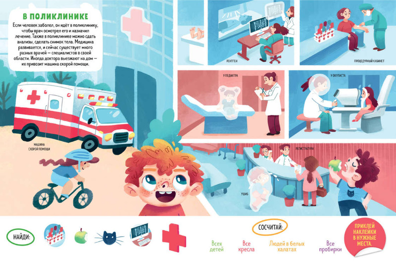 Классная книга с тематическими наклейками. Хорошие иллюстрации. Можно придумывать истории вместе с детьми.