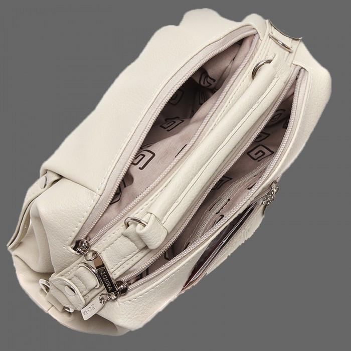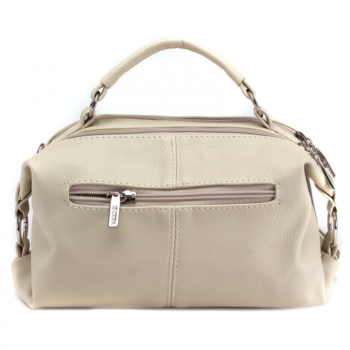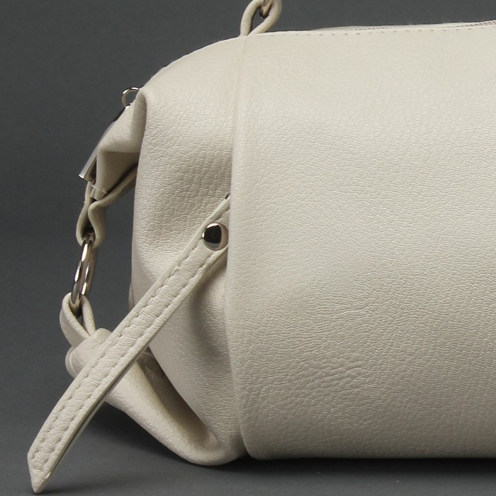 Сумочка понравилась. Цвет скорее серо-серебристый, не навязчивый. Небольшая, но вместительная, мягкая. Внутри в одном отделении кармашек с замочком, в другом без замочка. Впереди , там где хлястики, два кармашка отдельных друг от друга. В дно вставлена картонка. Носить через плечо удобно. Я рада, что для меня она подошла. У Flip отличный сервис. Спасибо.