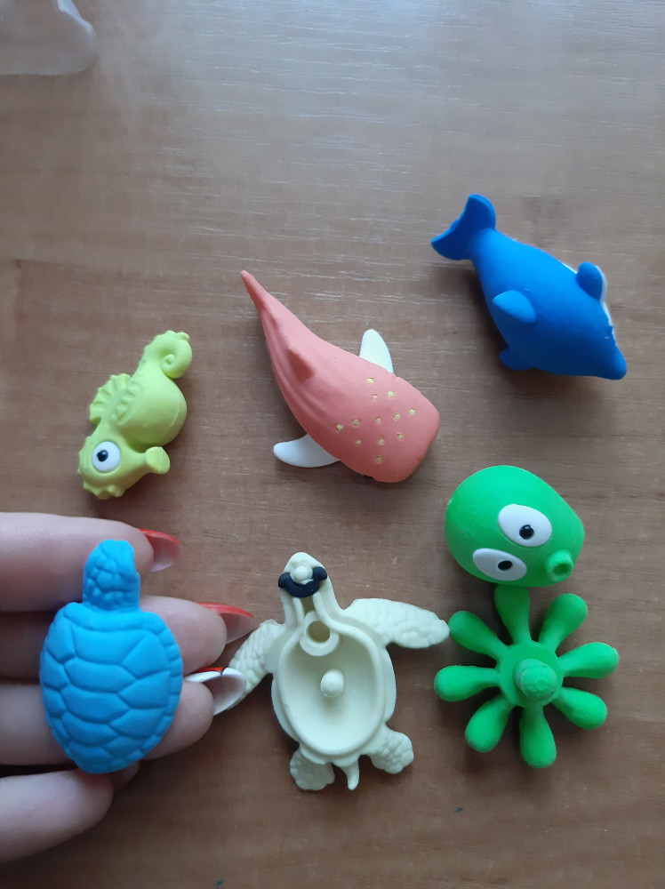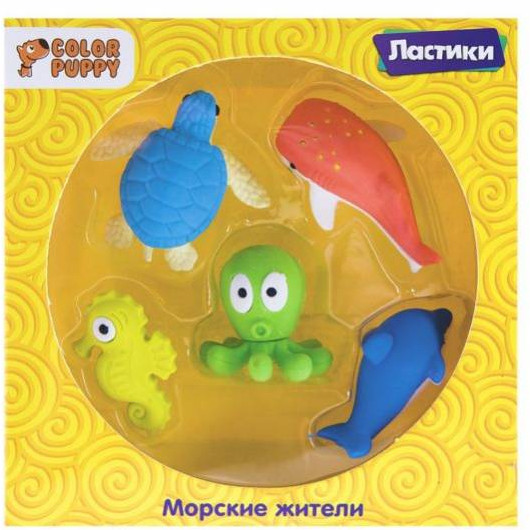 Color Puppy Ластики «Морские жители»В данный момент этот товар отсутствует в продаже. Возможно, у нас найдется аналогичный или похожий товар здесь. Ластики «Морские жители» от торговой марки сделаны настолько реалистично, что напоминают своим внешним видом самых настоящих животных! В комплект входит пять разноцветных ластиков в виде обитателей подводного мира: черепашки, морского конька, дельфинчика, осьминога и кашалота. Канцелярская резинка изготовлена из полимерных материалов. |