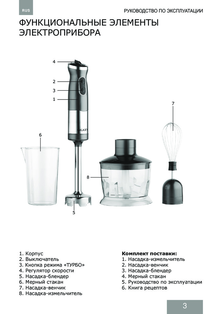 Лезвия, использующиеся для измельчения, изготовлены из нержавеющей стали. Они хорошо держат заточку. Набор Galaxy GL2121 работает в «Turbo» режиме, благодаря которому вы сможете измельчать особо твердые продукты. Очевидным преимуществом модели Galaxy GL2121 является плавная регулировка скорости и мотор с низким уровнем шума. Книга рецептов в комплекте поможет разнообразить ваше меню.