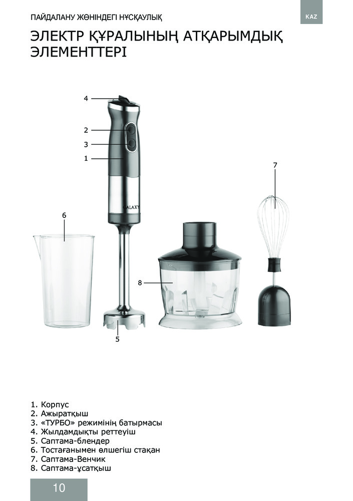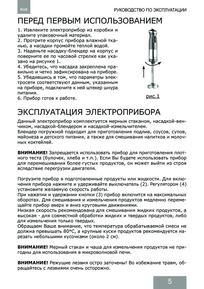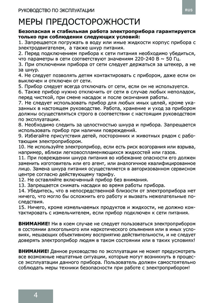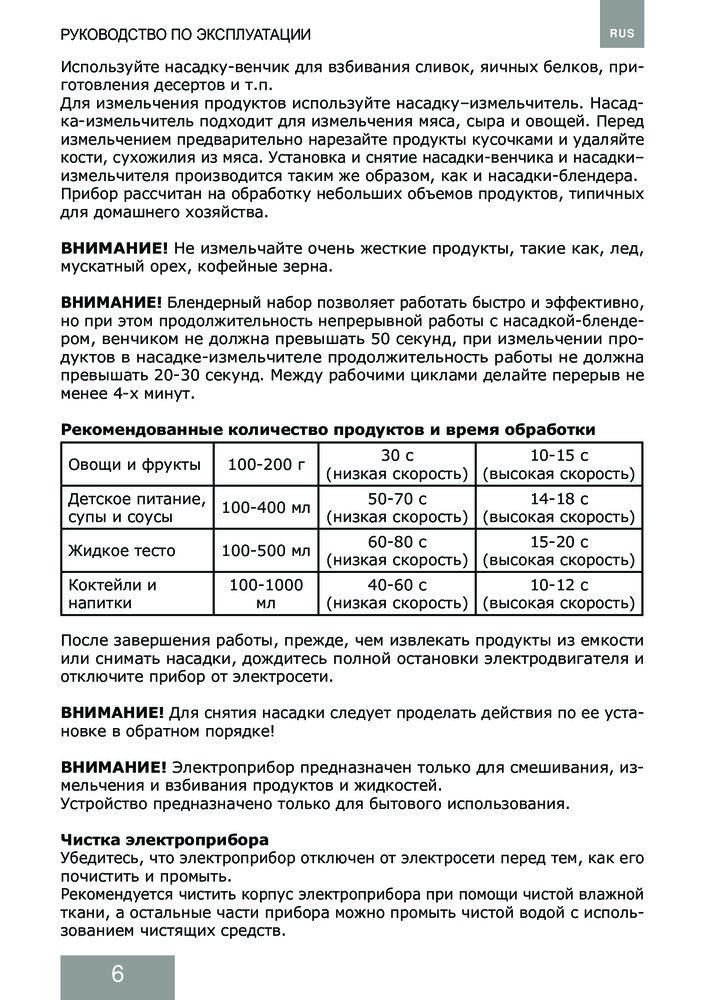 4-х лезвийная система блендерных ножей из нержавеющей стали, венчик для взбивания, книга рецептов, мерный стакан, низкий уровень шума, плавная регулировка скорости, турборежим