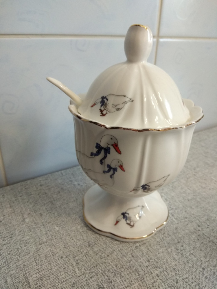 Очень красивая сахарница. Всё пришло хорошо упаковано, целое, буду заказывать ещё.