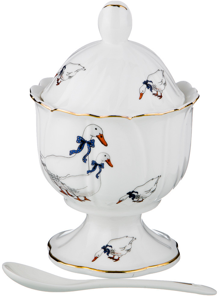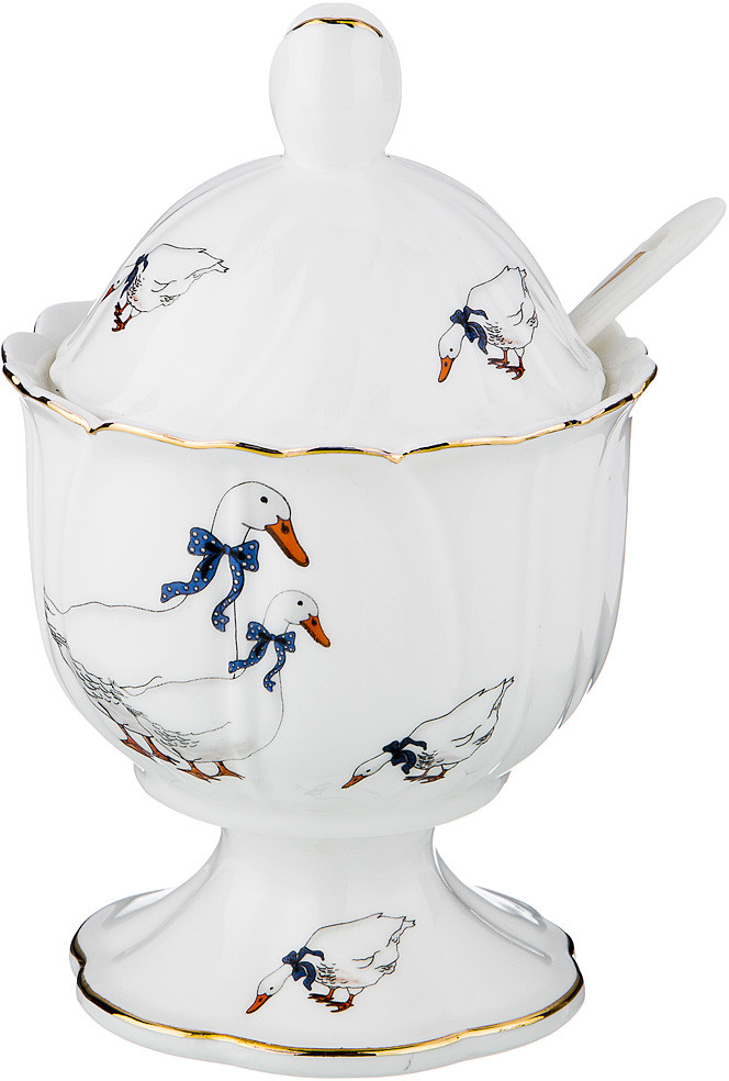 Lefard Сахарница с ложкой «Гуси»В данный момент этот товар отсутствует в продаже. Возможно, у нас найдется аналогичный или похожий товар здесь. Серия: Гуси Сахарница дополнит вашу коллекцию посуды для хранения сыпучих ингредиентов. Она изготовлена из фарфора высокого качества, укомплектована удобной ложкой, закрывается крышкой. Материал идеально подходит для хранения пищевых продуктов, он экологичен и безопасен для здоровья. Легко моется в теплой воде с небольшим количеством моющего средства для посуды. Элегантный дизайн и оригинальный рисунок хорошо впишутся не только в интерьер традиционной кухни, но и выполненной в современном стиле. |