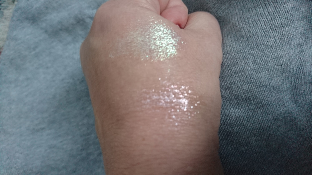 Я брала блеск софитов и полярная звезда. Просвотчила оба на руке. Первый пигмент не впечатлил: он оранжевого оттенка с довольно крупными блестками. А вот полярная звезда - супер! Переливается радужными оттенками под разными углами. Есть и крупные блестки, но в за счет основного "тона", это не критично. Наносить однозначно надо на базу. Действительно маленький тюбик, а пигмента в нем меньше половины, но учитывая, что он на особые случаи, хватит надолго.
