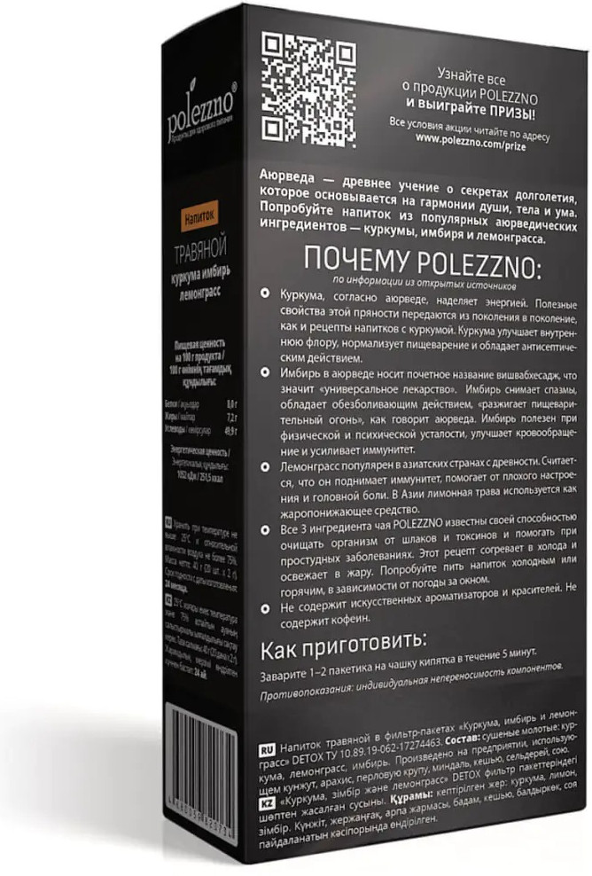 Polezzno Чай пакетированный с куркумой, имбирем и лемонграссом