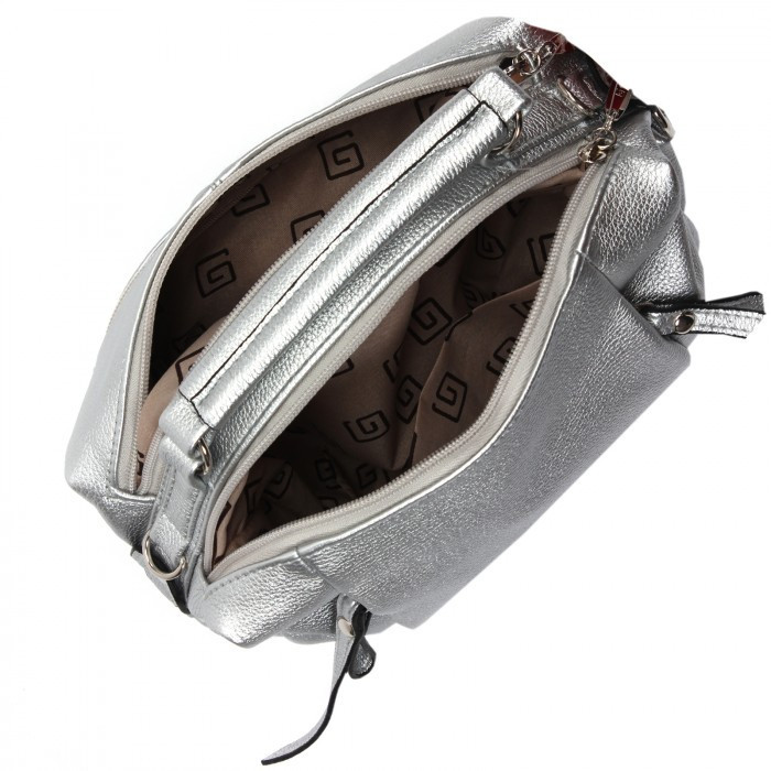Сумочка понравилась. Цвет скорее серо-серебристый, не навязчивый. Небольшая, но вместительная, мягкая. Внутри в одном отделении кармашек с замочком, в другом без замочка. Впереди , там где хлястики, два кармашка отдельных друг от друга. В дно вставлена картонка. Носить через плечо удобно. Я рада, что для меня она подошла. У Flip отличный сервис. Спасибо.
