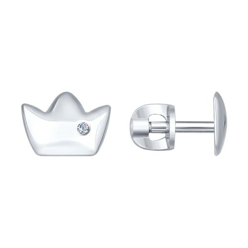 Ни одна сказочная принцесса не может обойтись без короны. Продолжая тренд «рисованных» или «мультяшных» украшений, дизайнеры SOKOLOV придумали забавные серьги-пусеты из серебра с бриллиантами в виде корон. Это украшение будет эффектно выглядеть вместе с платьем на вечеринке или дополнять повседневный наряд. С такими серьгами вы всегда будете выглядеть достойно.