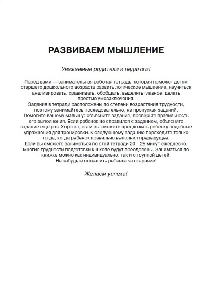 Развиваем мышление: Рабочая тетрадь для детей 6-7 летВ данный момент этот товар отсутствует в продаже. Возможно, у нас найдется аналогичный или похожий товар здесь. Серия: Скоро в школу Перед вами - занимательная рабочая тетрадь, которая поможет детям старшего дошкольного возраста развить логическое мышление, научиться анализировать, сравнивать, обобщать, выделять главное, делать простые умозаключения. |