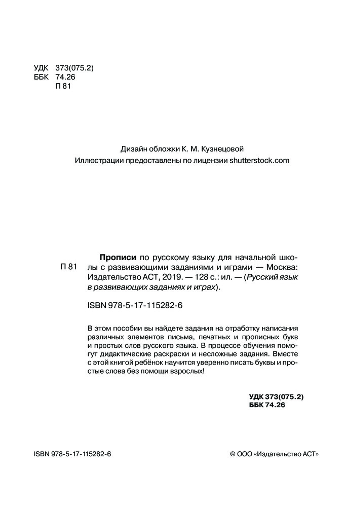 Прописи по русскому языку с развивающими заданиями и играми. Для начальной школыВ данный момент этот товар отсутствует в продаже. Возможно, у нас найдется аналогичный или похожий товар здесь. Серия: Русский язык в развивающих заданиях и играх В этом пособии вы найдете задания на отработку написания различных элементов письма, печатных и прописных букв и простых слов русского языка. В процессе обучения помогут дидактические раскраски и несложные задания. Вместе с этой книгой ребёнок научится уверенно писать буквы и простые слова без помощи взрослых! |