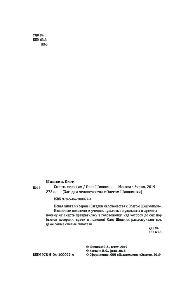 Известные политики и ученые, культовые музыканты и артисты — почему их смерть превратилась в головоломку, над которой до сих пор бьются историки, врачи и полиция? Олег Шишкин рассматривает все, даже самые смелые гипотезы: