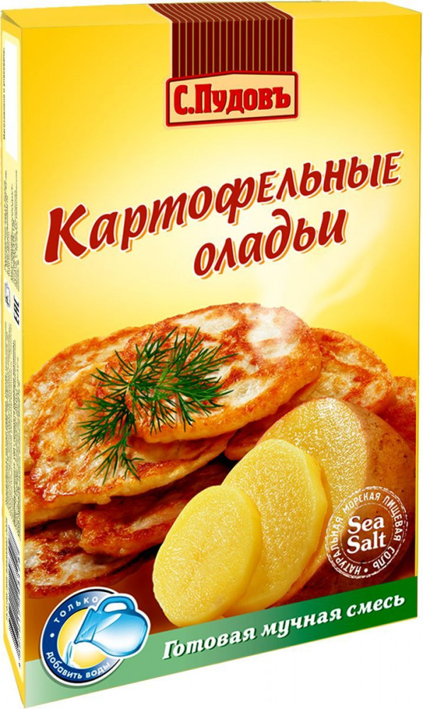 С.Пудовъ Смесь готовая «Оладьи картофельные»В данный момент этот товар отсутствует в продаже. Возможно, у нас найдется аналогичный или похожий товар здесь. Картофельные оладьи могут быть как самостоятельным блюдом, так и отличным гарниром к рыбе, мясу, грибами. Выпечка сытна, полезна и питательна. Для украшения готового блюда перед подачей на стол можно использовать веточку зелени. Каждая хозяйка имеет свое собственное представление о том, как приготовить картофельные оладьи. Однако, в любом случае, если вы хотите приготовить картофельные оладушки к завтраку, то встать придется достаточно рано. Но есть отличная альтернатива классическому приготовлению! Сегодня можно воспользоваться специальной смесью для приготовления таких оладий. Многие хозяйки уже по достоинству оценили простоту и удобство процесса приготовления. |