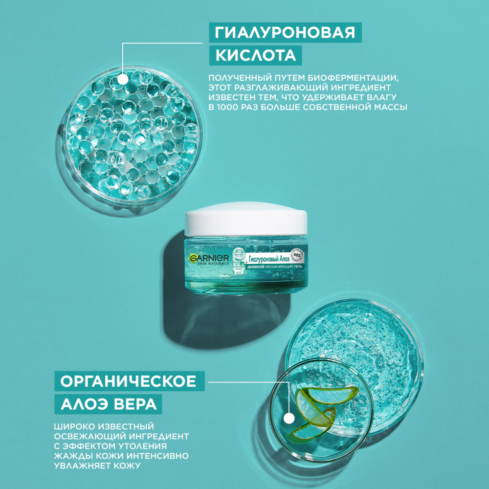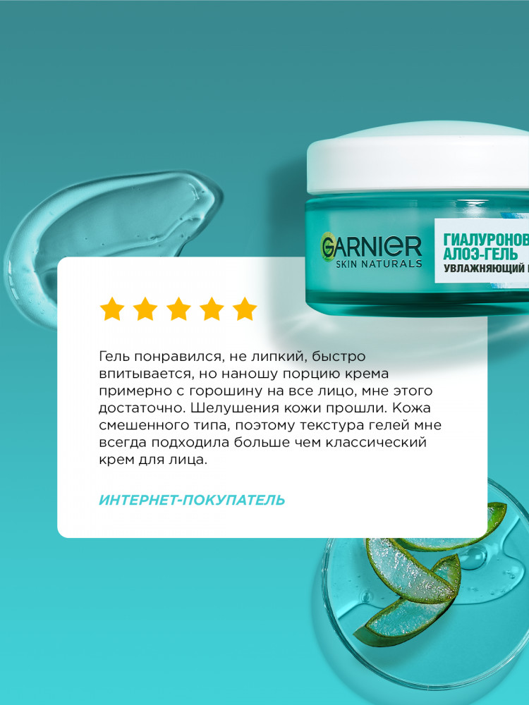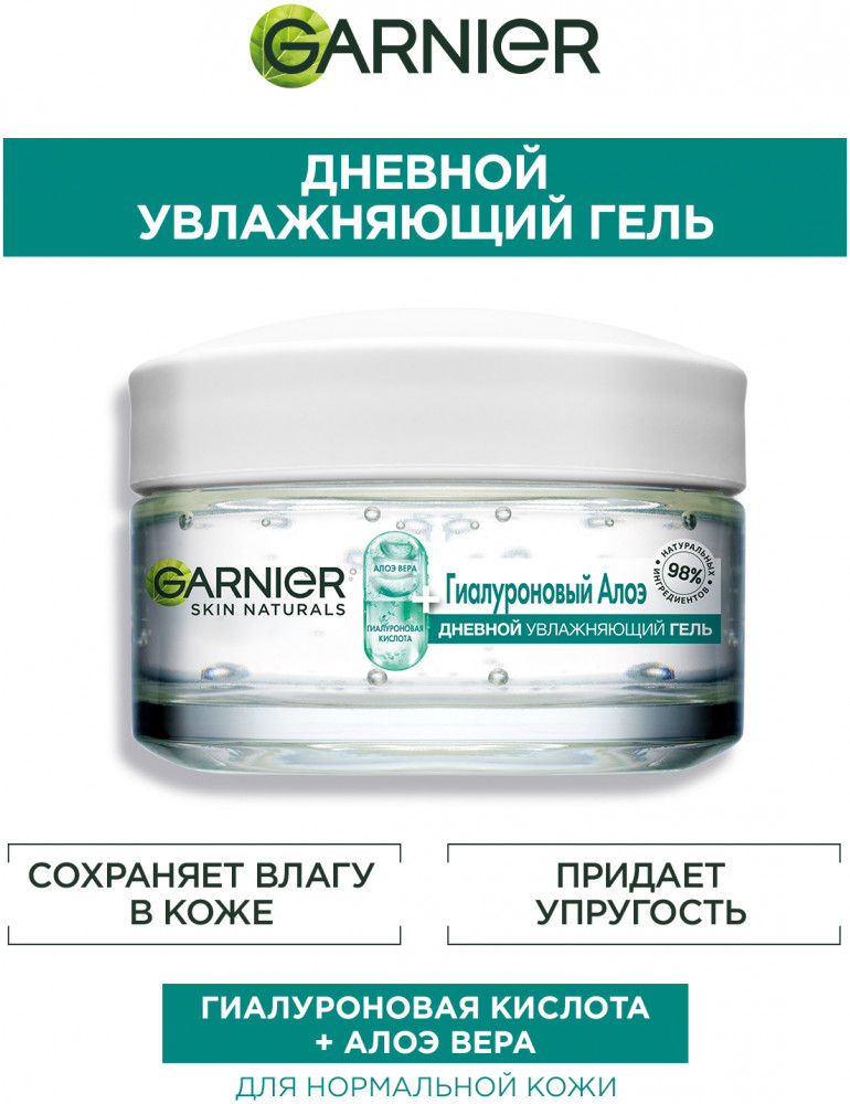 Garnier Гиалуроновый гель для лица увлажняющий с алоэ вера и гиалуроновой кислотой для интенсивного увлажнения и упругости нормальной и смешанной кожи-32% хорошо увлажняет быстро впитывается легкая текстура липкость