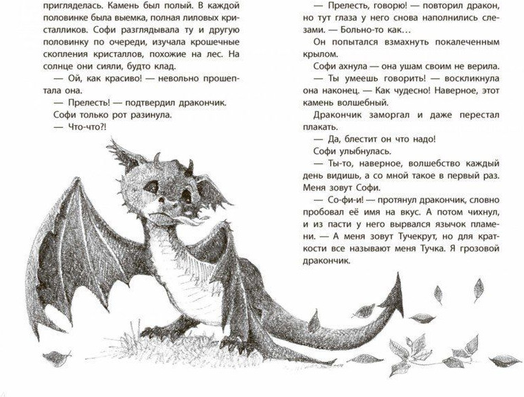Тучка - грозовой дракончикВ данный момент этот товар отсутствует в продаже. Возможно, у нас найдется аналогичный или похожий товар здесь. Серия: Волшебный дозор Буря застала Софи в саду. Вдруг над её головой пролетело что-то лиловое, раздался удар, страшный визг — и сломанные ветви дерева посыпались в разные стороны. Софи подошла поближе и увидела существо с огромными тёмными глазами, бархатистой шкуркой и длинным гребнем, тянущимся по спине и хвосту. Дракончик жалобно всхлипнул: у него было сломано крыло. Чтобы спасти дракончика от злого сэра Фицроя и стражников, Софи будет нужна вся её храбрость и помощь друзей. А ещё — капелька волшебства. Но что, если в опасности и другие магические звери? В следующих книгах серии «Волшебный дозор» ты познакомишься с удивительными существами: небесным единорогом, чудо-птенчиком и многими другими. |