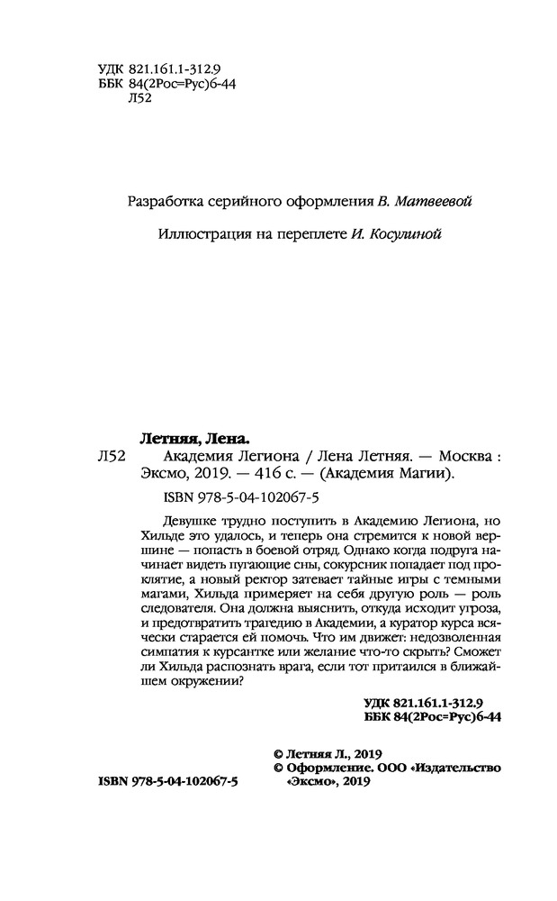 Девушке трудно поступить в Академию легиона, но Хильде это удалось, и теперь она стремится к новой вершине — попасть в боевой отряд. Однако когда подруга начинает видеть пугающие сны, сокурсник попадает под проклятие, а новый ректор затевает тайные игры с темными магами, Хильда примеряет на себя другую роль — роль следователя. Она должна выяснить, откуда исходит угроза и предотвратить трагедию в Академии, а куратор курса всячески старается ей помочь. Что им движет: недозволенная симпатия к курсантке или желание что-то скрыть? Сможет ли Хильда распознать врага, если тот притаился в ближайшем окружении?