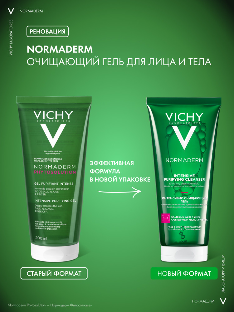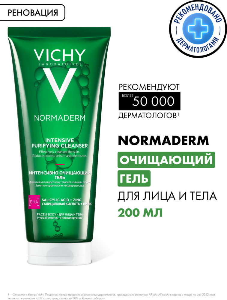 Vichy NORMADERM Интенсивно очищающий гель для лица и тела-25%