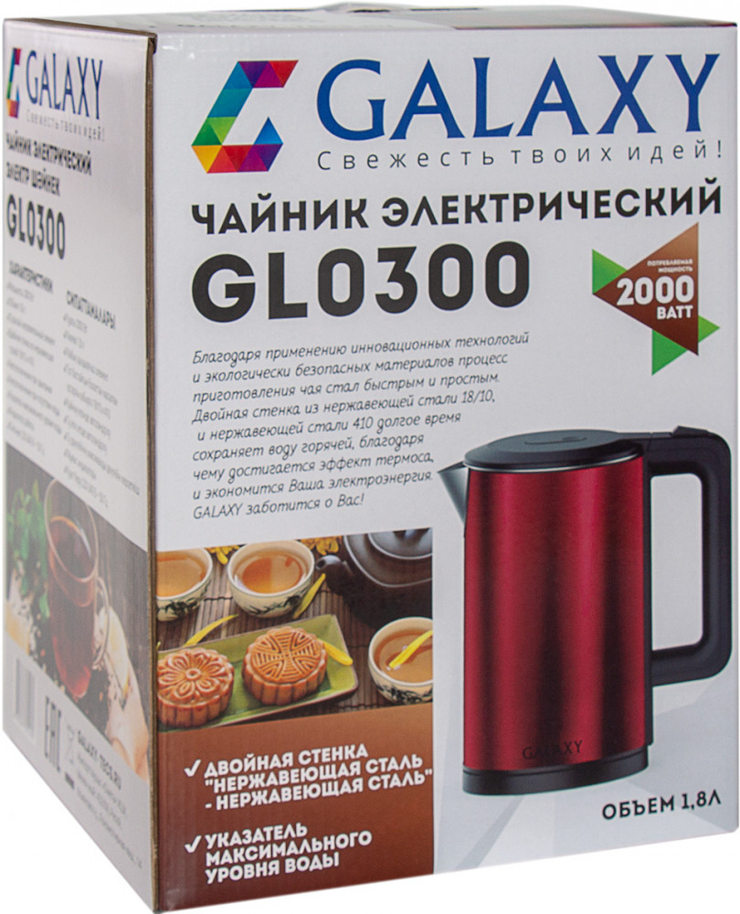 Galaxy Чайник GL0300В данный момент этот товар отсутствует в продаже. Возможно, у нас найдется аналогичный или похожий товар здесь. Электрический чайник с двойными стенками GL0300. Главным преимуществом этого чайника являются двойные стенки. Внешняя стенка выполнена из нержавеющей стали 410, а внутренняя — из нержавеющей стали марки 18/10. Эта сталь имеет название «медицинская» или «хирургическая», т.к. медицинские и хирургические инструменты изготавливаются исключительно из нее. Она устойчива к коррозии и воздействию солей даже при нагревании, препятствует размножению микробов. |