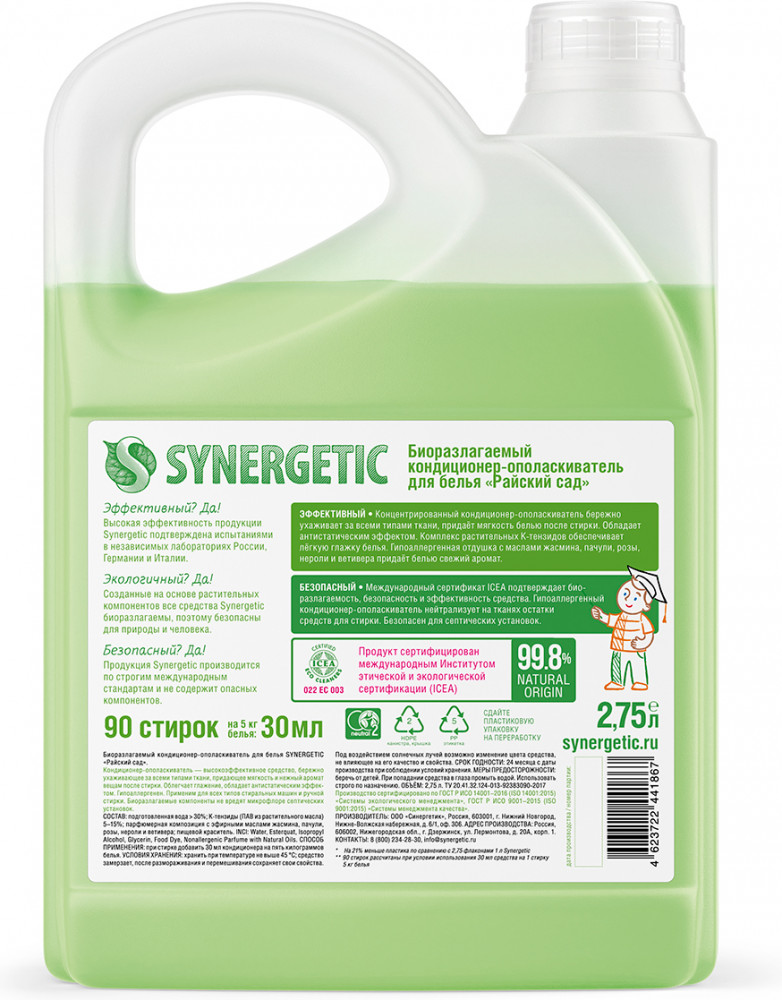 Synergetic Кондиционер-ополаскиватель для белья биоразлагаемый «Райский сад»