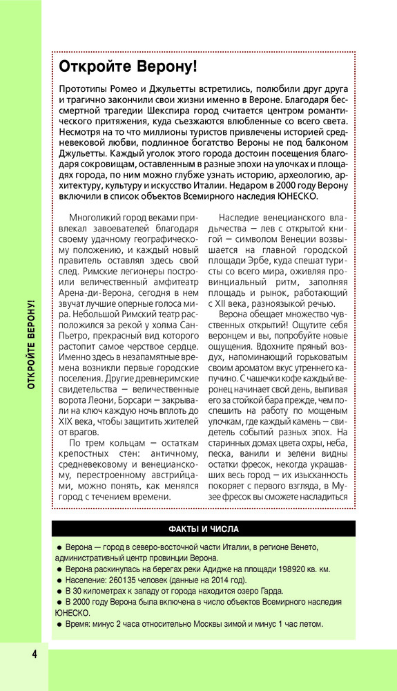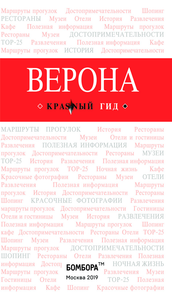 ВеронаВ данный момент этот товар отсутствует в продаже. Возможно, у нас найдется аналогичный или похожий товар здесь. Серия: Красный гид (обложка) Перед вами экспресс-гид по Вероне. В нем содержится краткая информация о городе, советы, как лучше провести первые 3 дня или неделю, и 25 главных достопримечательностей. Также в книге вы найдете описания самых интересных мест каждого района города. Гуляйте, знакомьтесь, восхищайтесь солнечной Вероной и получайте нужную информацию в режиме нон-стоп! |
