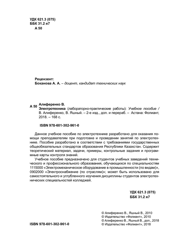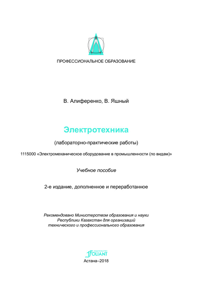 Данное учебное пособие по электротехнике разработано для оказания помощи преподавателям при подготовке и проведении занятий по электротехнике. Пособие разработано в соответствии с требованиями государственных общеобязательных стандартов образования Республики Казахстан. Содержит теоретический материал, задачи, примеры, контрольные задания и программные карты контроля знаний.