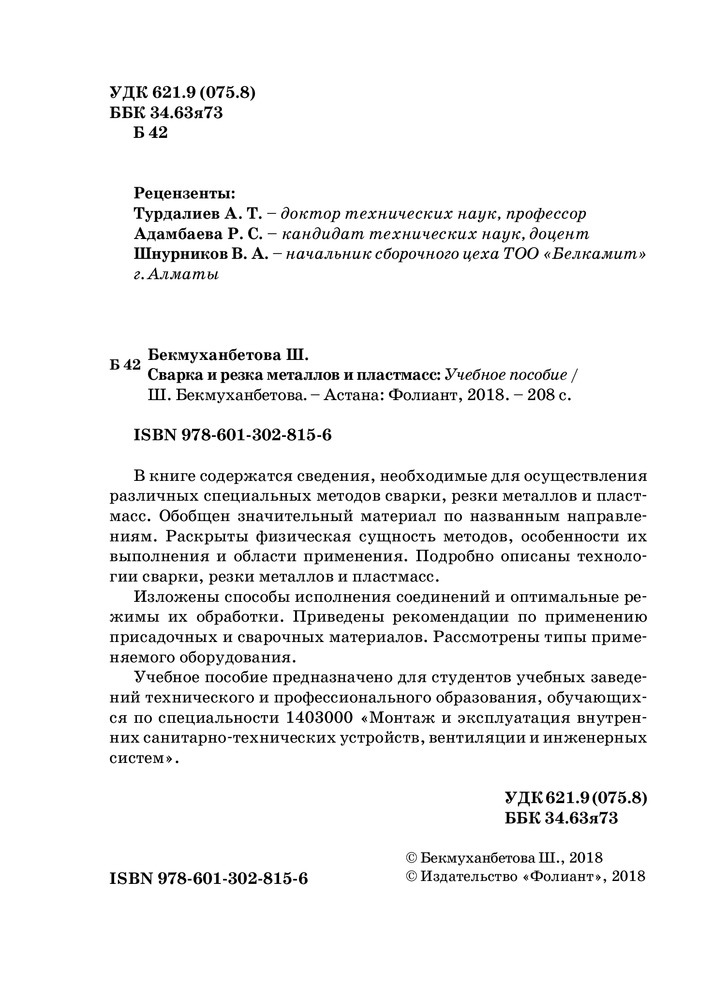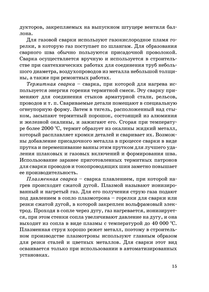 В книге содержатся сведения, необходимые для осуществления различных специальных методов сварки, резки металлов и пластмасс. Обобщен значительный материал по названным направлениям. Раскрыты физическая сущность методов, особенности их выполнения и области применения. Подробно описаны технологии сварки, резки металлов и пластмасс.