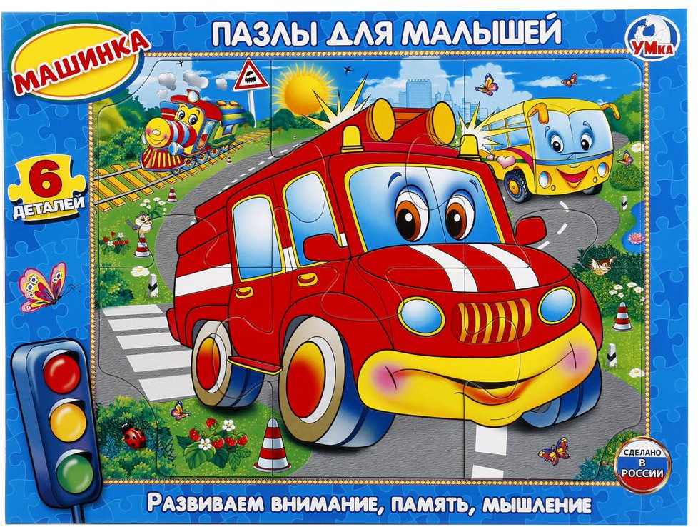 УМка Пазл в рамке «Машинка»В данный момент этот товар отсутствует в продаже. Возможно, у нас найдется аналогичный или похожий товар здесь. С развивающим пазлом от российской компании «Умка» ребенок увлекательно проведет свой досуг, собирая картинку из 6 мягких деталей с фрагментами изображения. А собрав картинку, сможет рассказать родителям — какой транспорт на ней изображен. Занятие полезно для развития мышления, внимания и моторики. |