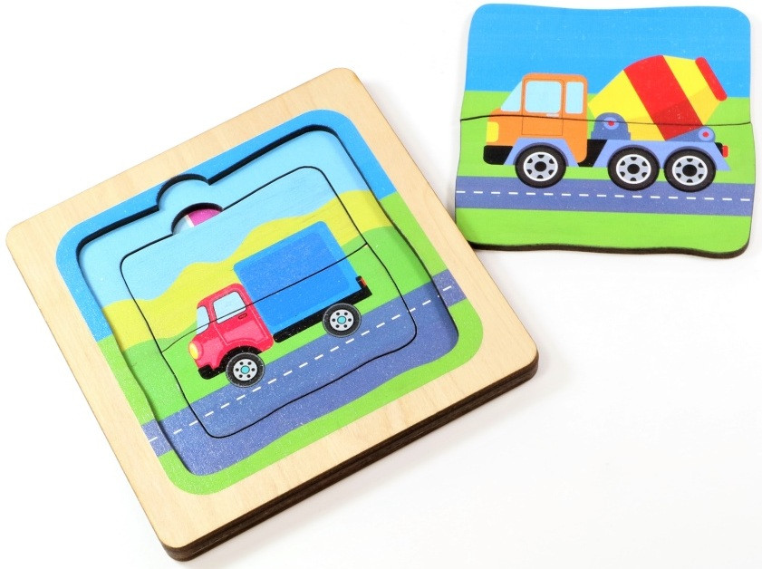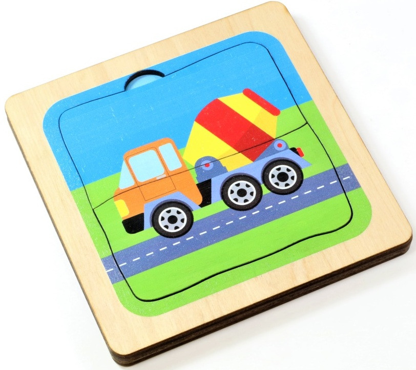Трехслойные деревянные пазлы — это прежде всего головоломка для детей, начиная с 3 летнего возраста. В отличии от обычных пазлов, здесь, собираемые картинки расположены друг под другом. В трехслойных пазлах «Машинки» на самом нижнем слое изображен легковой автомобиль. Второй слой с грузовичком состоит из двух половинок, он укладывается поверх предыдущего. Третий слой с бетоновозом также состоит из двух половинок и укладывается поверх двух предыдущих. Играя в пазлы, ребенку предстоит найти и объяснить логическую взаимосвязь в расположении слоев с машинками. |