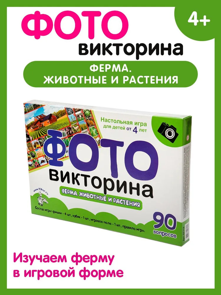 Серия: Фотовикторина Развивающая игра «Фотовикторина «Ферма. Животные и растения» — познакомит вашего ребёнка с миром сельскохозяйственных животных и культурных растений, выращиваемых человеком. Играя, дошкольники и ученики начальных классов, запомнят вешний вид и названия представителей животного и растительного мира. Игра отлично расширяет кругозор и тренирует память, она способна объединить за одним столом всё поколение вашей семьи. Игра позволит проводить занимательные и полезные занятия с вашим ребёнком, увлекая его в мир животных и растений. Играйте и развивайтесь вместе, игра подарит увлекательный досуг как детям, так и взрослым! |
