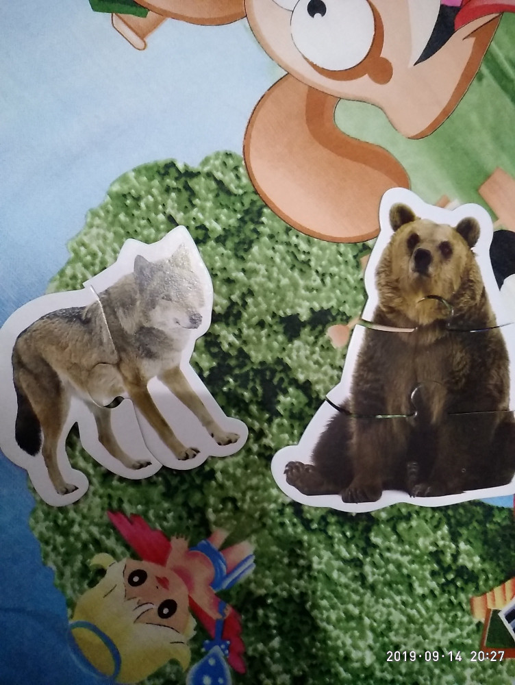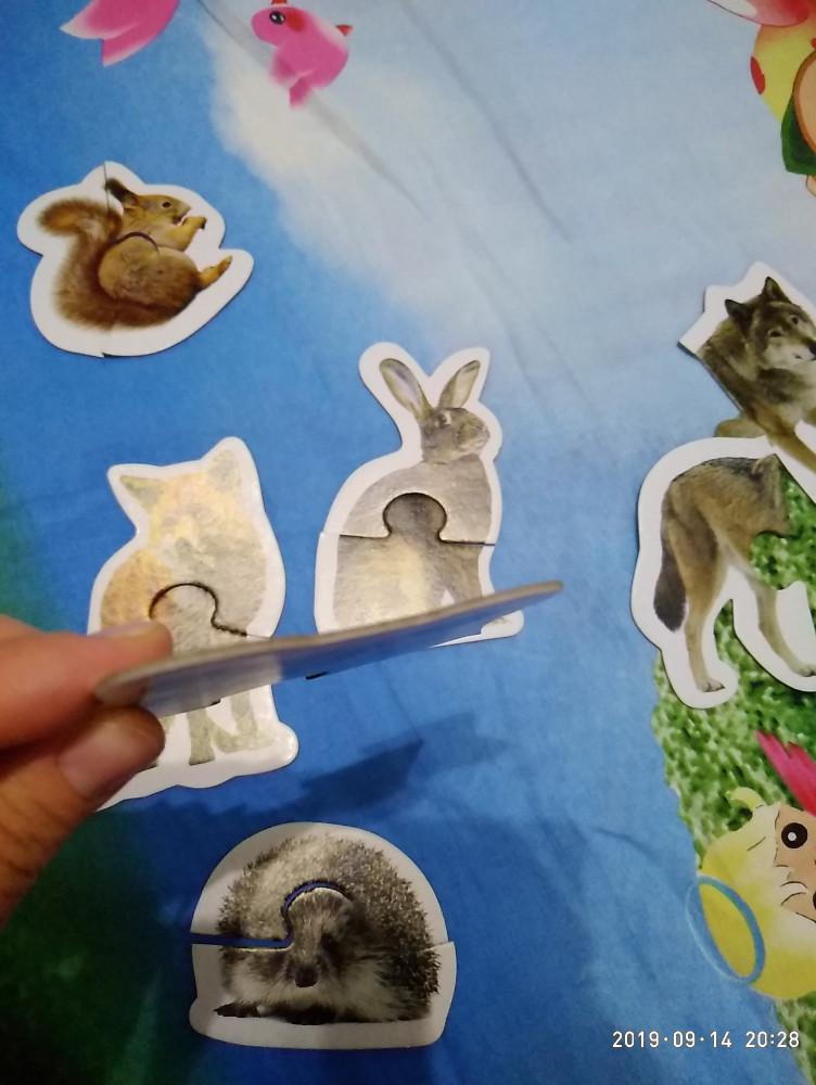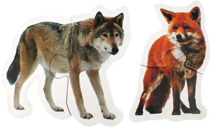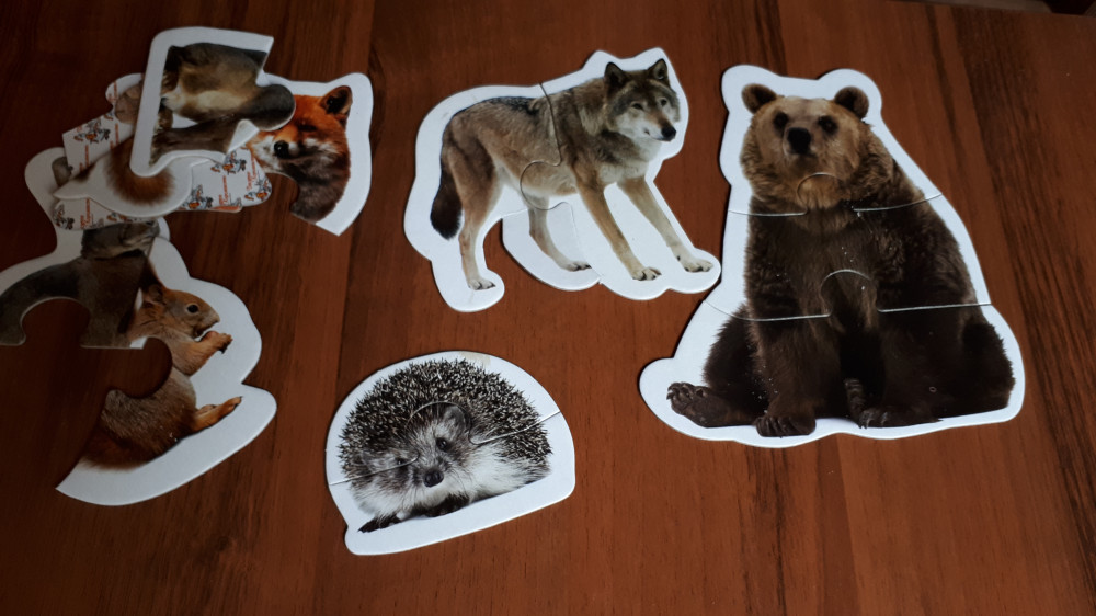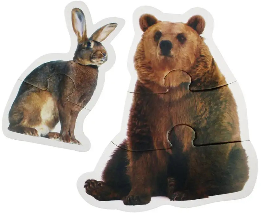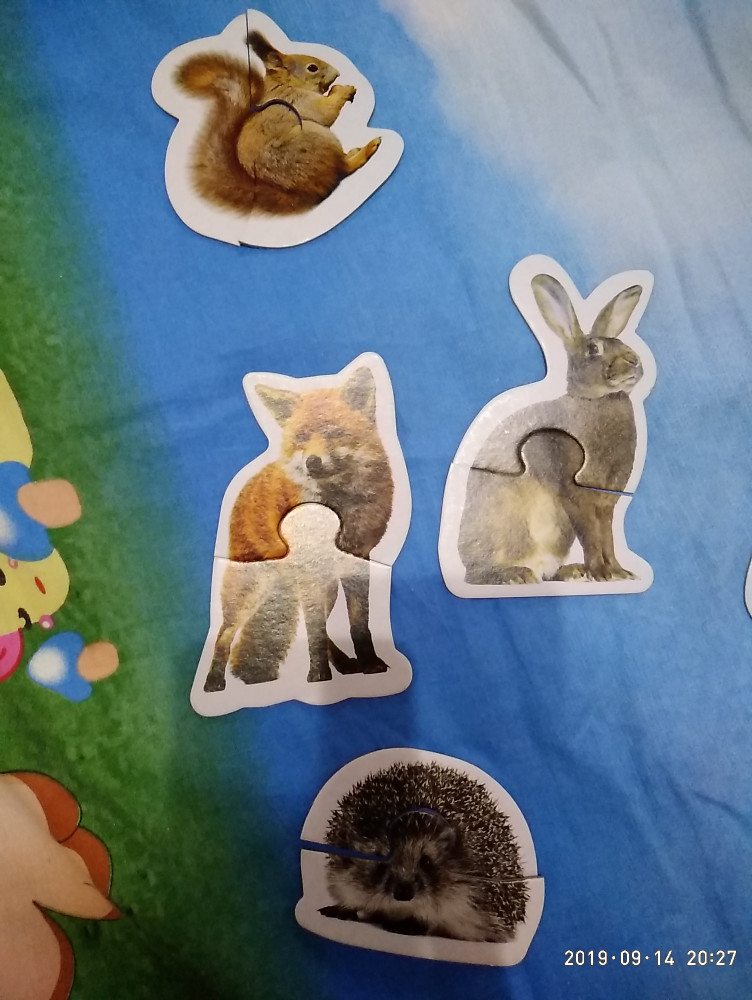 Очень хорошие пазлы. Для начинающих. сыну 1.10. собирает из двух элементов. Пазлы из прочного картона, яркие, не рисованные. Это фотографии животных, что делает их еще лучше.