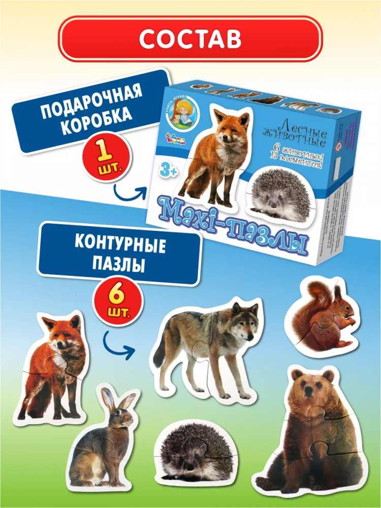 Десятое королевство Макси-пазлы «Лесные животные»-45% плотный картон яркие крупные детали фотографии животных качественно