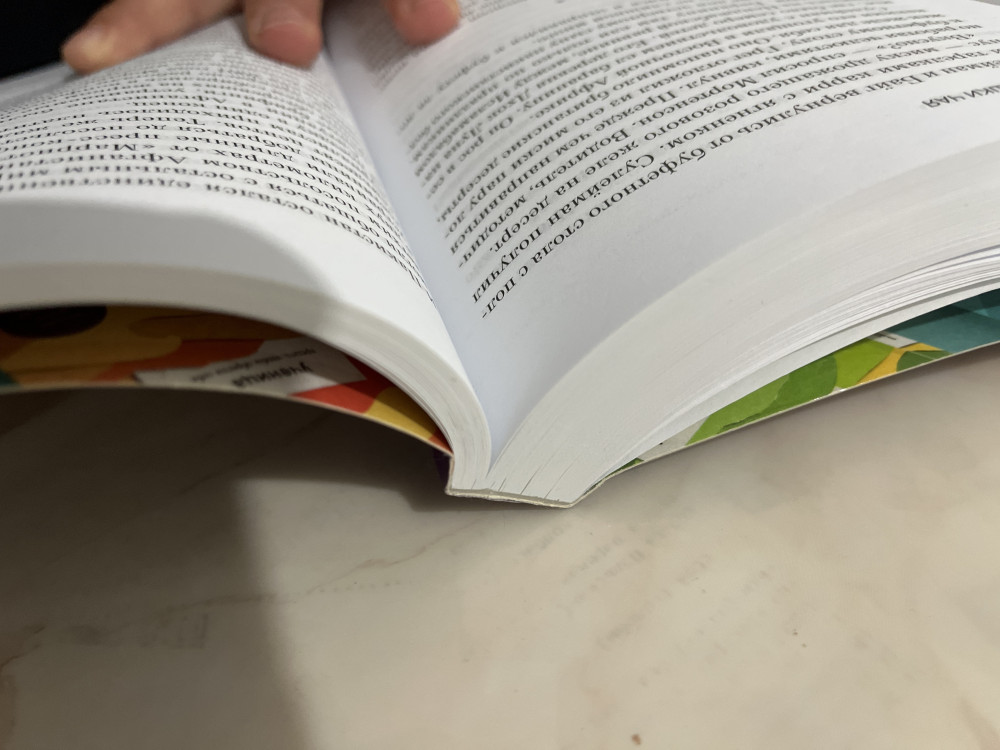 Книга пришла в пункт в идеальном состоянии. Мягкая обложка но при этом приятная на ощупь. Страницы плотные и белые. Текст читается очень хорошо.