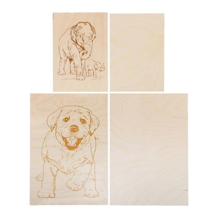 • на большую доску нанесено изображение забавного щенка (30 × 21 см), а на маленькую — семья слонов (21 × 15 см);