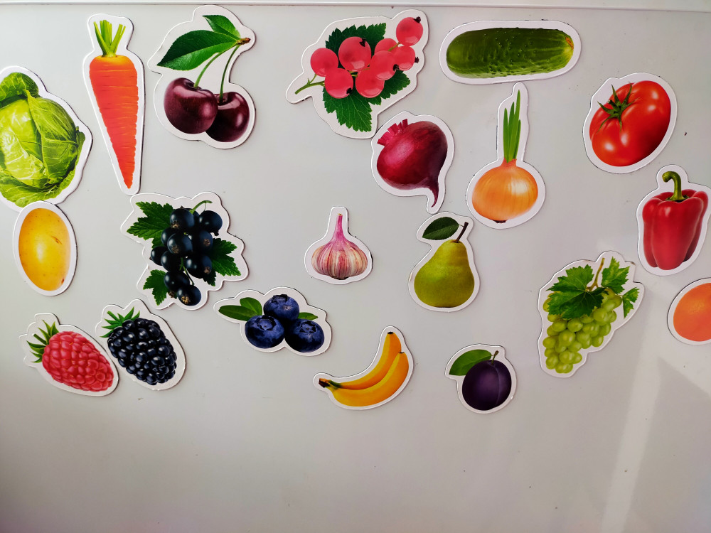 Хорошие крупные магниты. Брали сразу 3 набора: овощи, фрукты и ягоды