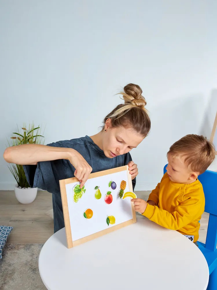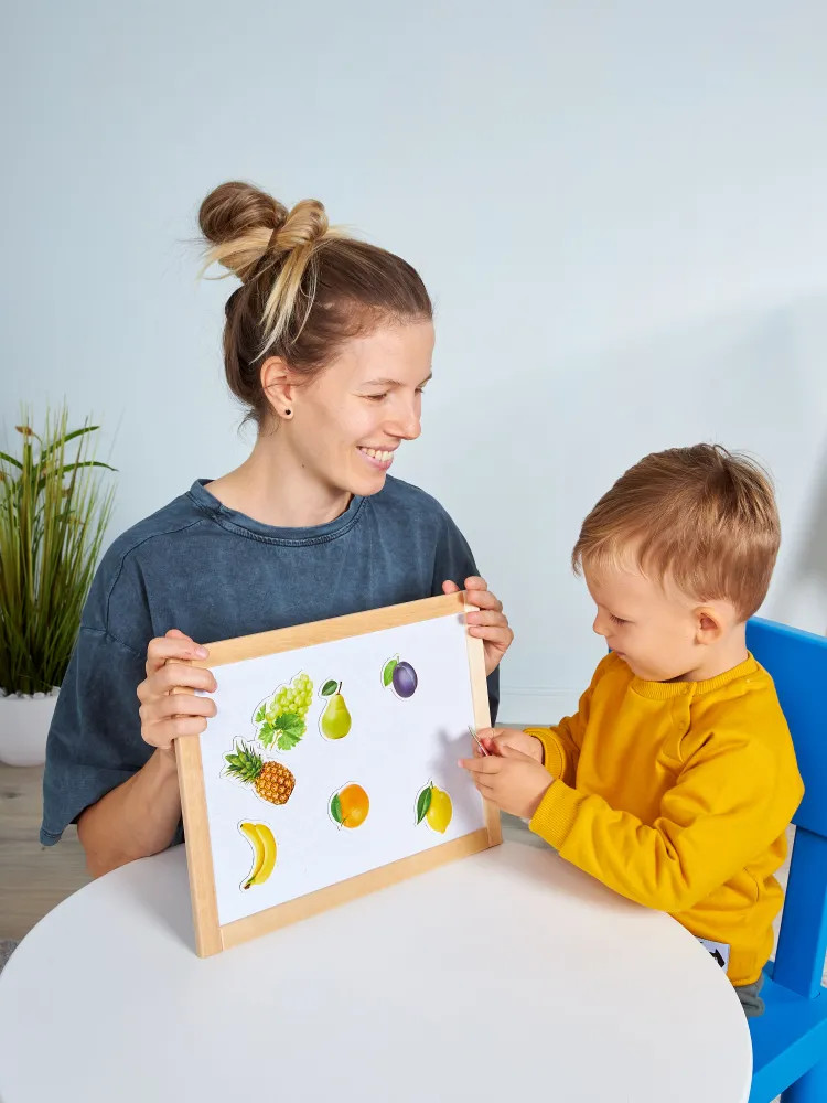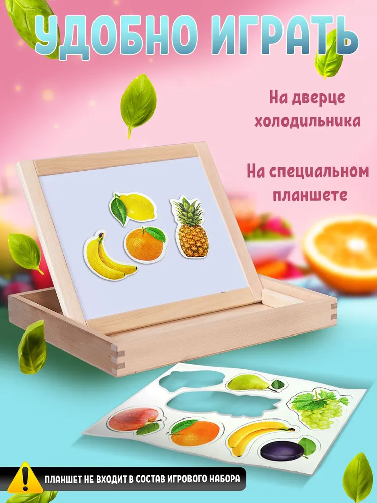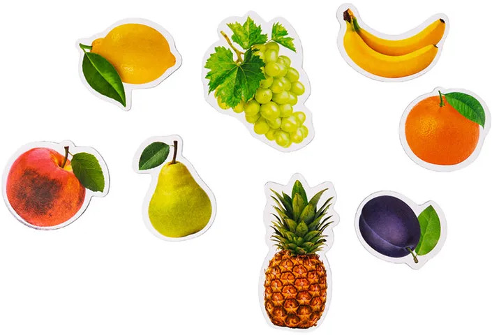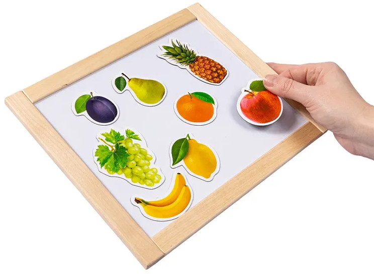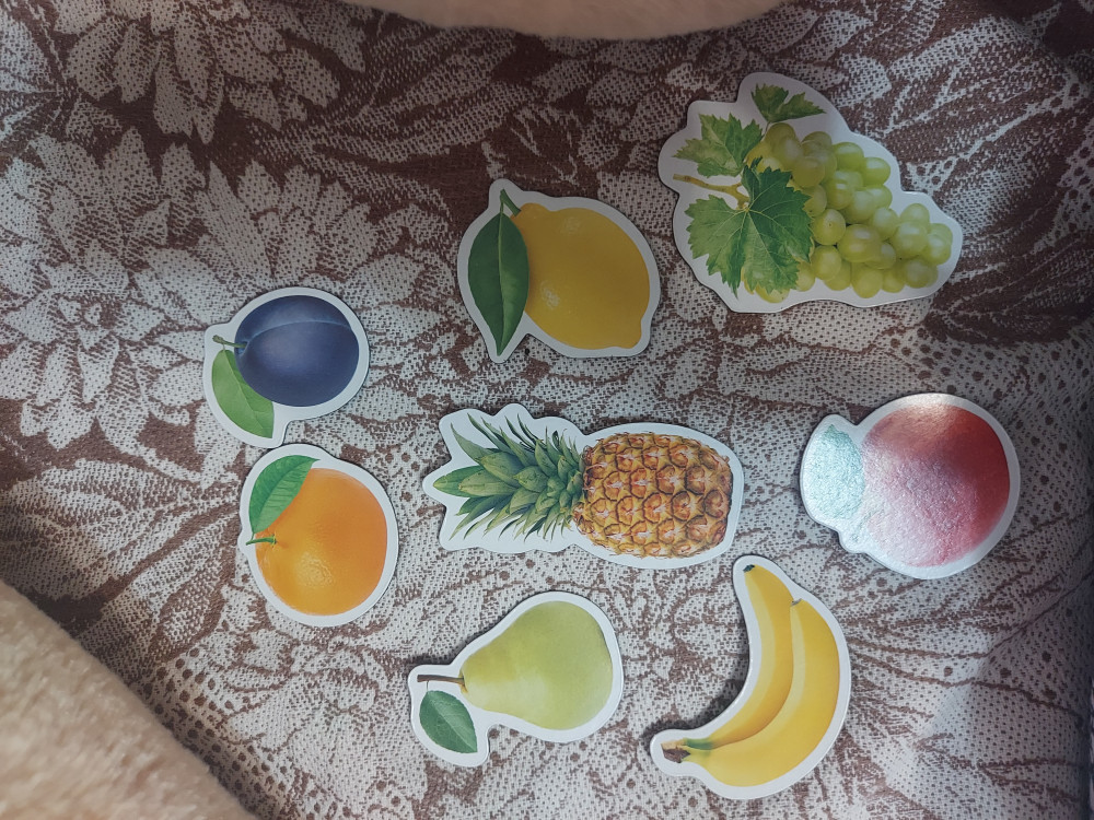 хорошее решение для тех кто хочет научить своего ребенка распознавать названия фруктов и всегда на виду у холодильника зависает 5-10 мин, уже по названию показывает тот или иной фрукт