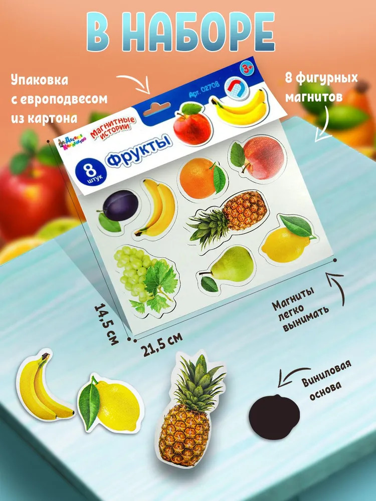 Десятое королевство Магниты «Фрукты»-25% +25 яркие картинки качественный рисунок подходит детям для обучения