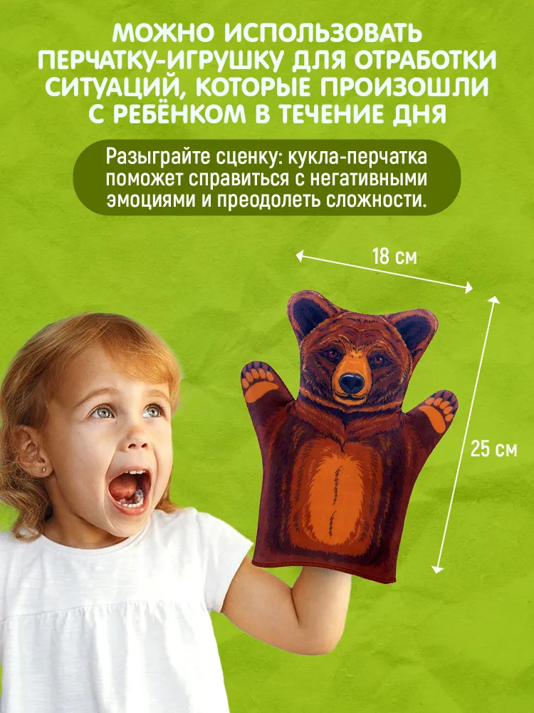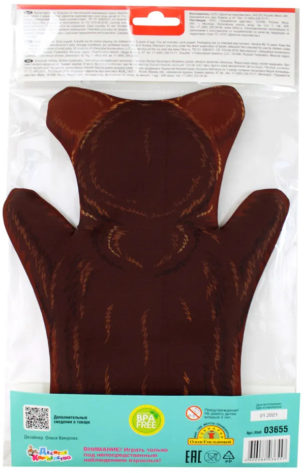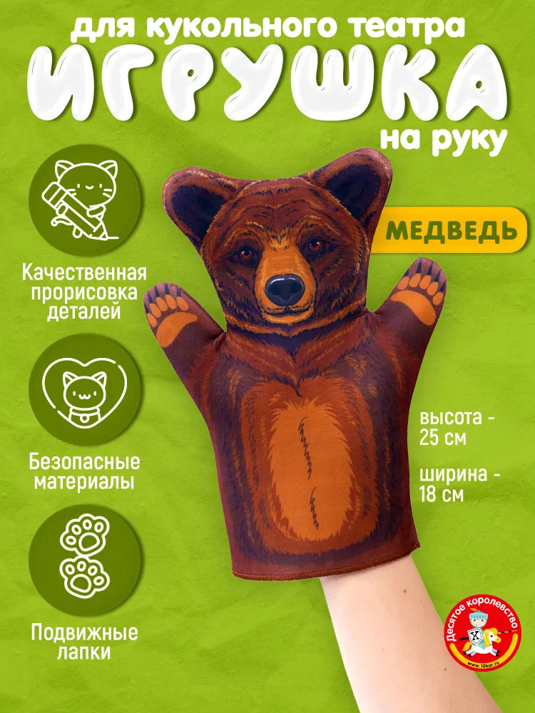 Десятое королевство Кукла-перчатка «Медведь»В данный момент этот товар отсутствует в продаже. Возможно, у нас найдется аналогичный или похожий товар здесь. Серия: Би-Ба-Бо Медведь, в качестве персонажа, встречается во многих русских народных сказках. Всегда добрый, неуклюжий и часто справедливый. Кукла-перчатка «Медведь» серии Би-Ба-Бо поможет ребенку проявить свои творческие способности, память и речь, развить фантазию создавая образ персонажа. Малыш может стать постановщиком своей собственной сказки или принять участие в коллективном спектакле. |