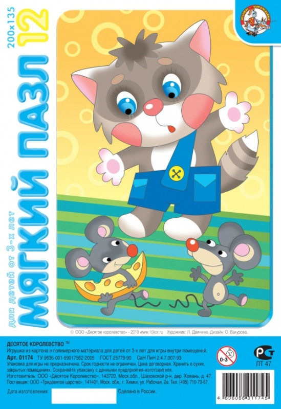 Десятое королевство Пазл мягкий «Мышки-воришки»В данный момент этот товар отсутствует в продаже. Возможно, у нас найдется аналогичный или похожий товар здесь. Игра с пазлом развивает логику и мелкую моторику рук малыша. Не случайно он рекомендован для детей от двух лет. Мягкий пазл для самых маленьких разработан по рекомендациям методистов и детских психологов. Мягкий пазл способствует развитию чувства формы, размера, цвета и симметрии по принципу — от простого к сложному. Сборные игры и игрушки учат ребенка добиваться всего своим трудом, уже в детстве занимая активную жизненную позицию, учат уважать чужой труд на примере своего, вырабатывают умелость рук и сообразительность. Сборные игрушки идеально подходят для совместных занятий взрослых и детей, сближая их общим интересным досугом. |