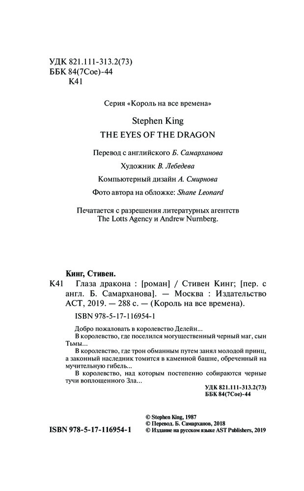 Творчество Стивена Кинга 🕷🕸люблю с детства😈☻. Естественно это фильмы Оно, Кл. домашних животных, Худеющий, Мгла и многие другие фильмы, недавно посмотрела сериал Хэйвен по роману "Парень из Колорадо " для меня сериал 💣! Книгу ещё не приобрела ☻! Книга "Глаза Дракона "🐲🐉! Так как я очень люблю драконов решила приобрести и эту книгу! Можно сказать это сказочный сюжет🏰🐉! Никаких ужасов здесь нет! Сказка о добре и зле. Как и должно быть всегда- Добро Победит! Для коллекции моих книг 🐉👍👍👍!!!