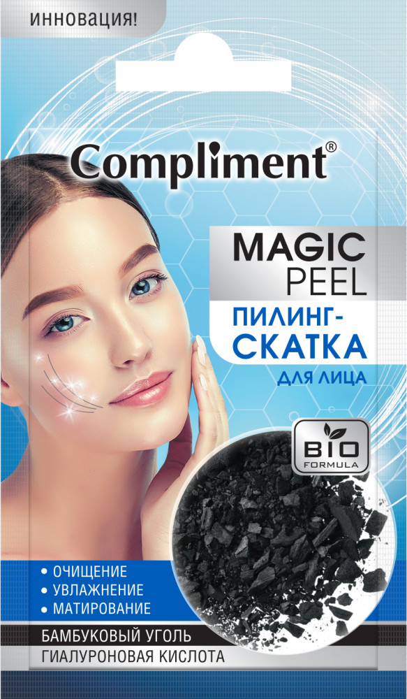 Compliment Пилинг-скатка для лица с бамбуковым углём и гиалуроновой кислотой