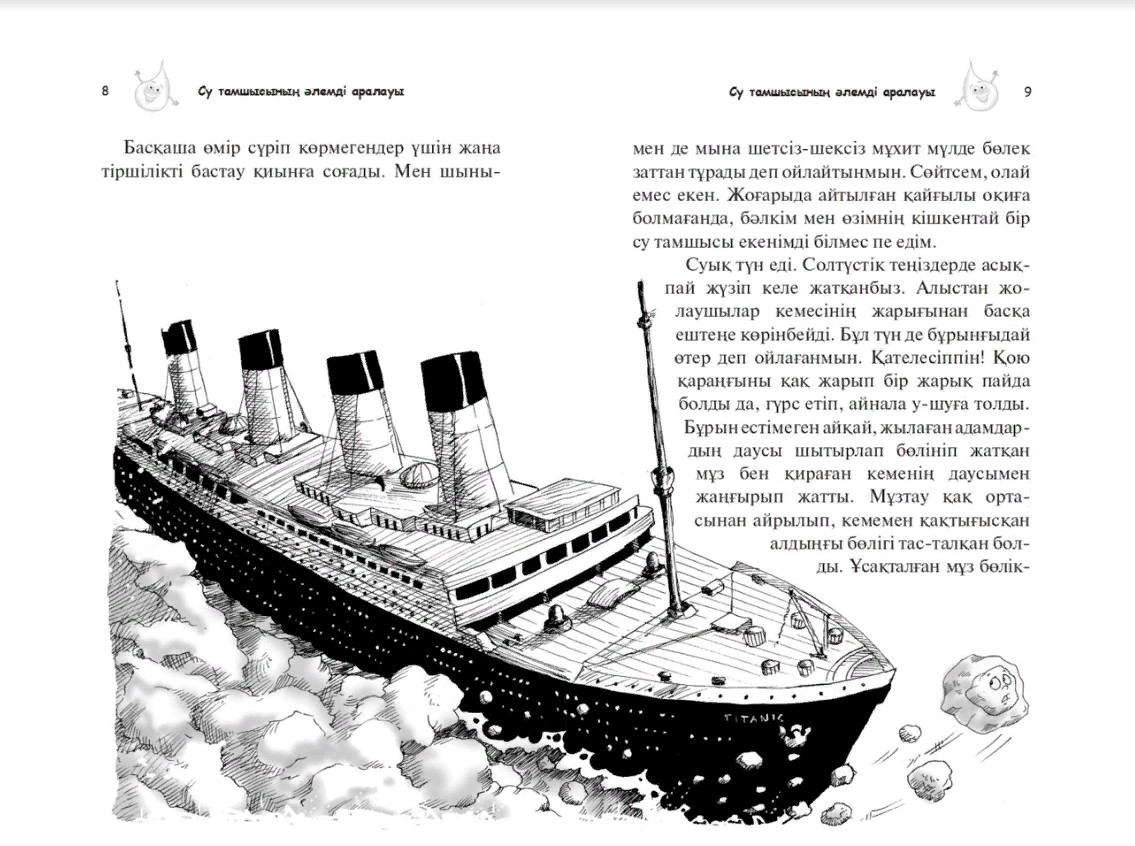 Су тамшысының әлемді аралауыВ данный момент этот товар отсутствует в продаже. Возможно, у нас найдется аналогичный или похожий товар здесь. Балақай, жер бетінде ең көп тараған не деп ойлайсың? Дұрыс айтасың, ол — су. Глобусқа немесе картаға қарайықшы, онда жер шарының төрттен үш бөлігі көгілдір түске боялған. Яғни су өте көп деген сөз. Су тіпті бүкіл тіршілік атаулының бойында бар. Судың тағы бір кереметтігі — оның жер бетінде үнемі тынымсыз айналыста жүретіндігі. Осылайша жер шарындағы судың мөлшері өзгермейді. Теңіз бен мұхиттардың, өзендер мен көлдердің бетінен су буға айналып, одан бұлт түзіледі. Ол жаңбыр немесе қар, бұршақ болып жерге жауады, яғни қайта суға айналады. |