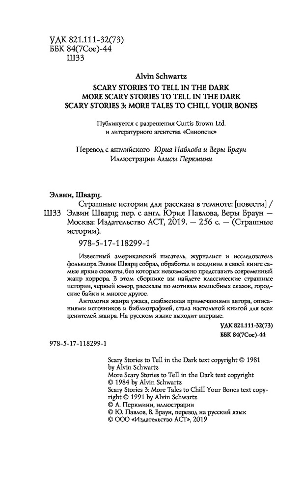 Страшные истории для рассказа в темнотеВ данный момент этот товар отсутствует в продаже. Возможно, у нас найдется аналогичный или похожий товар здесь. Серия: Страшные истории Известный американский писатель, журналист и исследователь фольклора Элвин Шварц собрал, обработал и соединил в своей книге самые яркие сюжеты, без которых невозможно представить современный жанр хоррора. В этом сборнике вы найдете классические страшные истории, черный юмор, рассказы по мотивам волшебных сказок, городские байки и многое другое. Антология ужаса, снабженная примечаниями автора, описаниями источников и библиографией, стала настольной книгой для всех ценителей жанра. На русском языке выходит впервые. |