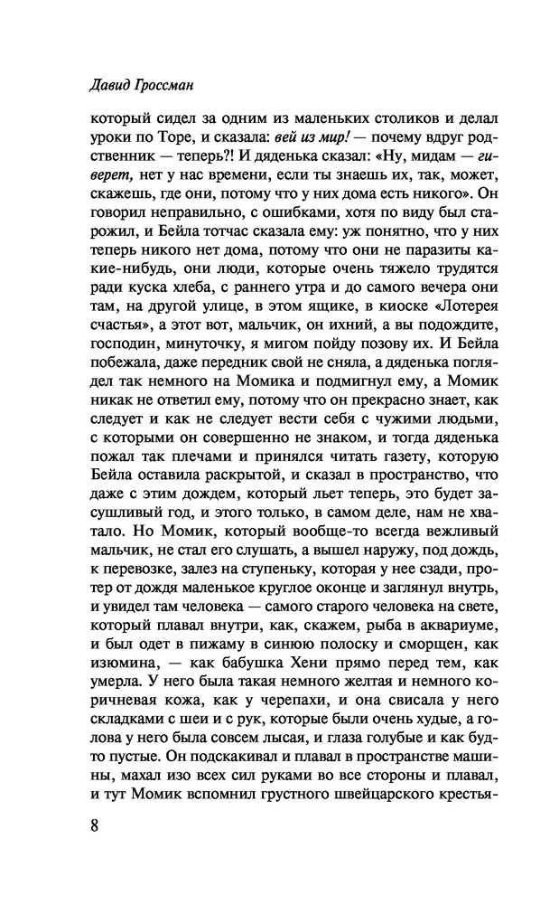 Давид Гроссман израильский писатель. Родился в столице Израиля—Иерусалиме. Окончил Еврейский университет, где изучал философию и театральное искусство. Один из самых известных современных писателей Израиля. Его романы изданы во многих странах, в том числе России, на русском языке. |