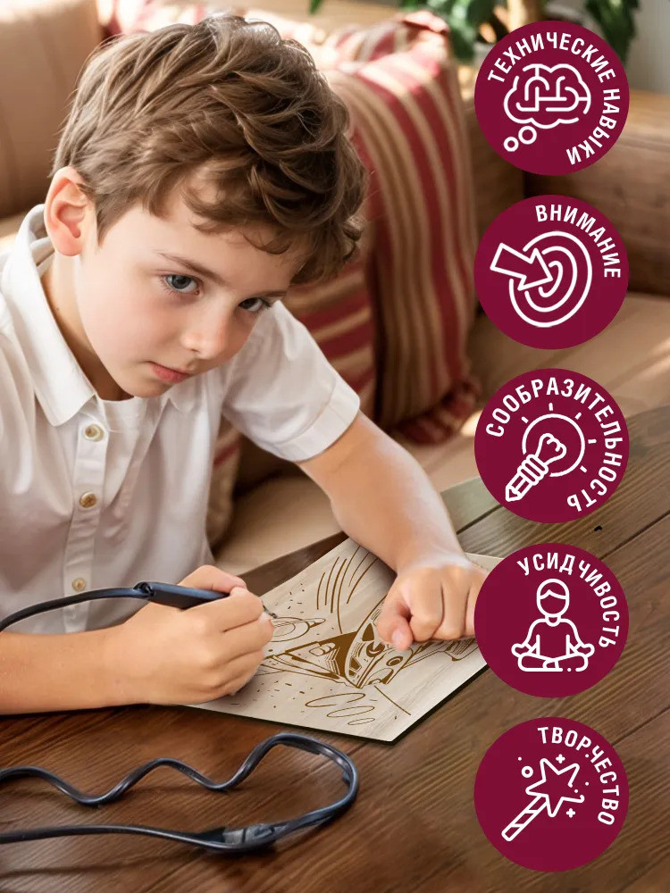 Серия: Выжигание по дереву Набор от торговой марки «Десятое королевство» станет отличным подарком для юного мастера. Он познакомит его с одним из древнейших и красивейших видов творчества — выжигание. Такое занятие будет способствовать развитию мелкой моторики, пространственного мышления, воображения и творческих способностей ребенка. |