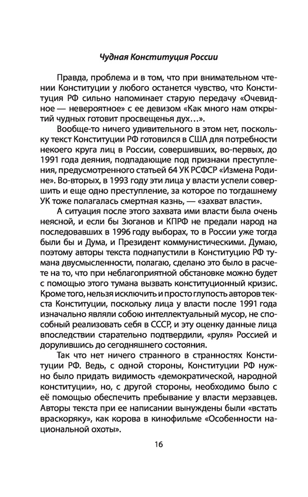 Юрий Мухин показывает, что требует принятая народом Конституция РФ и что творит власть на самом деле. Прочитав эту книгу, вы будете понимать, что в России творится и как это называется.