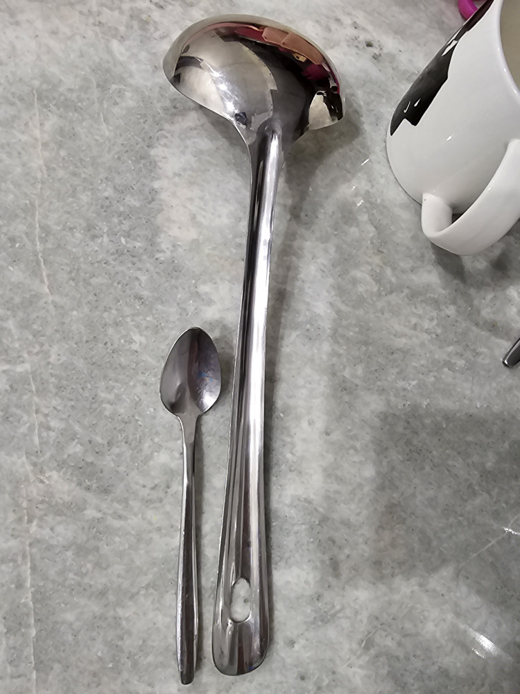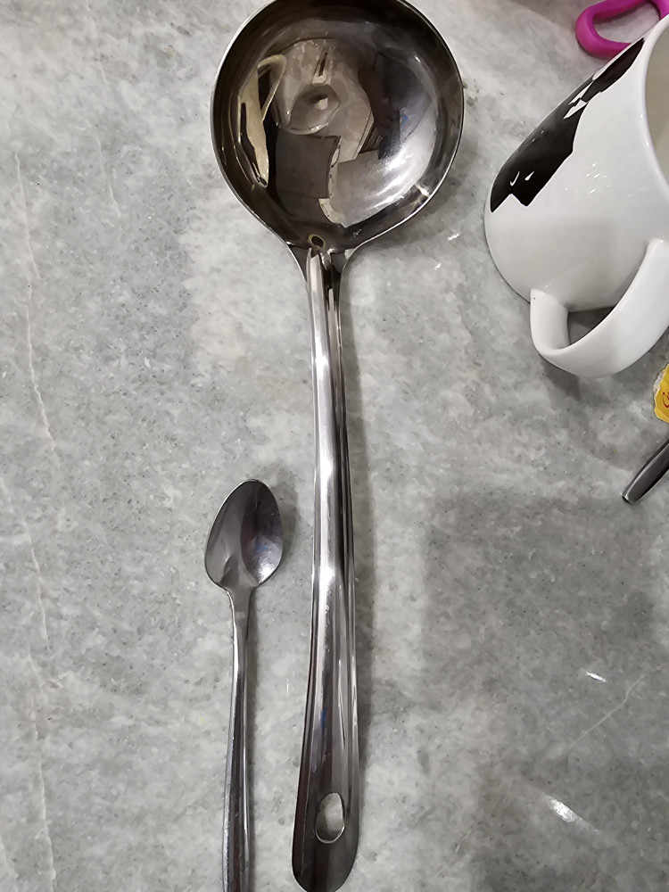 Половник понравился, небольшой, то, что надо. Метал чуть тоньше моего старого половника. Производитель - Индия.