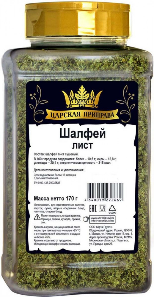 Банка довольно большая, хватит надолго. На практике ещё не применяла, в некоторых рецептах нужен шалфей, но свежего у нас не продают (или мне не встречался). Попробую сухой. Если в кулинарии не понравится, то можно лечиться им.