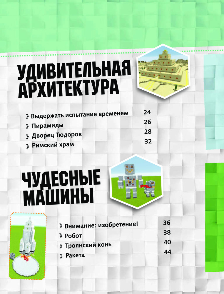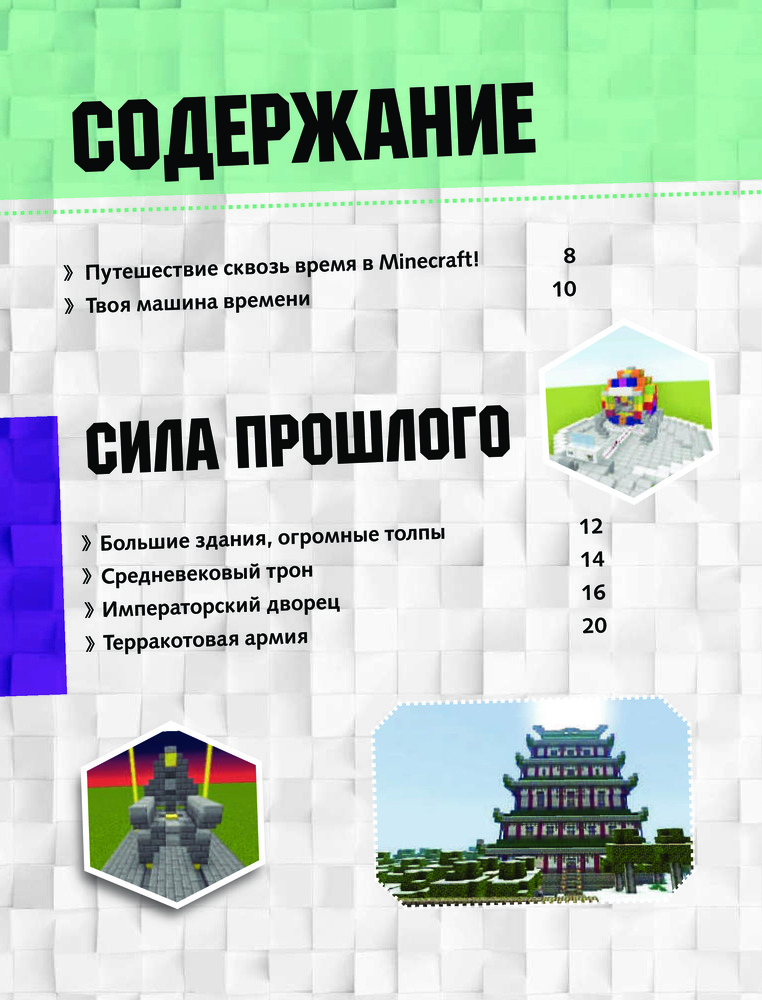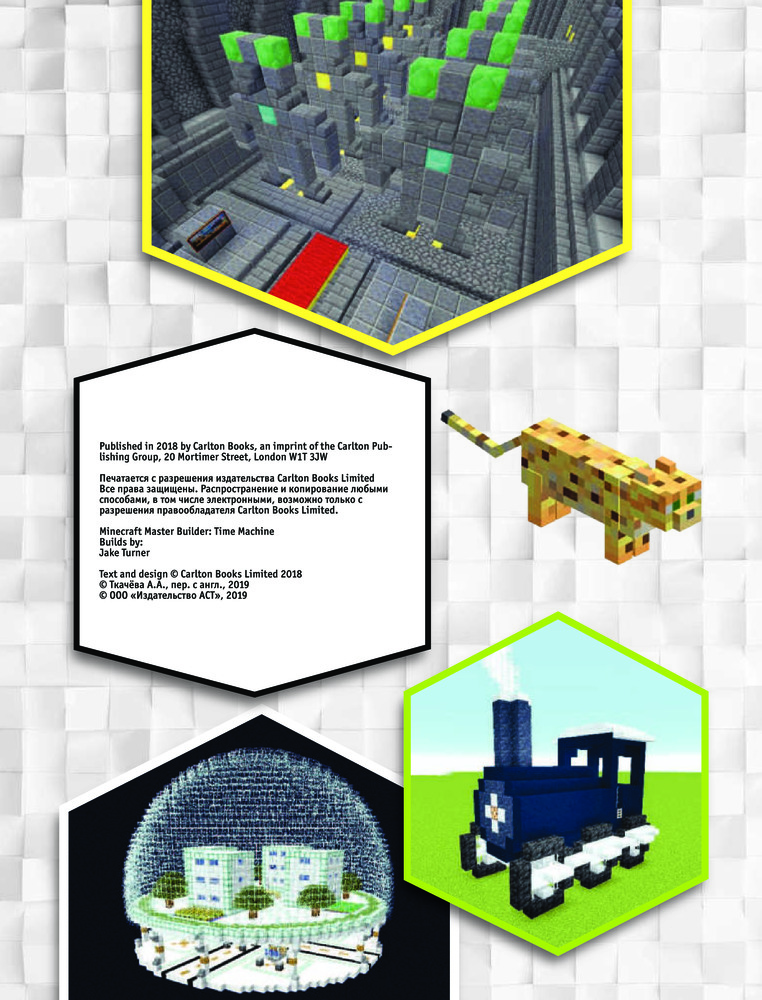 Minecraft. Машина времениВ данный момент этот товар отсутствует в продаже. Возможно, у нас найдется аналогичный или похожий товар здесь. Серия: Вселенная Minecraft Книга «Minecraft: Машина времени» из серии «Вселенная Minecraft» отправит читателя в путешествие сквозь время и расскажет, как создать в Minecraft такие невероятные сооружения, как пиратский корабль, древние пирамиды, космический корабль, ракету и даже троянского коня! Это простая пошаговая инструкция, с которой игра станет проще и интереснее. Множество цифр и фактов, полезные советы и иллюстрации окажут неоценимую помощь как начинающему игроку, так и заядлому любителю мира Minecraft! Для среднего школьного возраста.  |